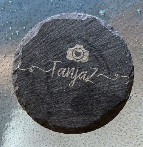 Neu verfüge ich auch über einen Laser. Eines meiner ersten Projekte war ein Schieferuntersetzer mit dem Logo meiner Frau zu versehen, was auf Anhieb sehr gut funktioniert hat.
